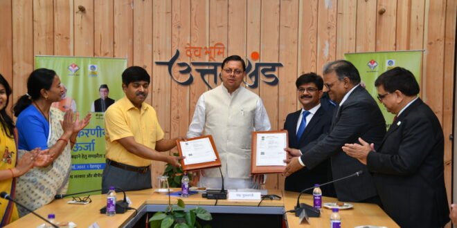 देहरादून । उत्तराखण्ड सरकार और भारत पेट्रोलियम कारपोरेशन लिमिटेड के मध्य एमओयू पर हस्ताक्षर किए गए। सीएम आवास मे आयोजित कार्यक्रम में राज्य में नवीकरण एवं अन्य परियोजनाओं के विकास और शत प्रतिशत वित्तीय निवेश किये जाने के लिए यह एमओयू किया गया है। एमओयू पर हस्ताक्षर के समय सीएम पुष्कर सिंह धामी भी मौजूद रहे।उत्तराखण्ड सरकार की ओर से सचिव ऊर्जा आर मीनाक्षी सुन्दरम और भारत पेट्रोलियम कारपोरेशन लिमिटेड की ओर से मुख्य महाप्रबंधक नवीनीकरण ऊर्जा शैली अब्राहम व अधिशासी निदेशक अमित गर्ग ने हस्ताक्षर किए।
