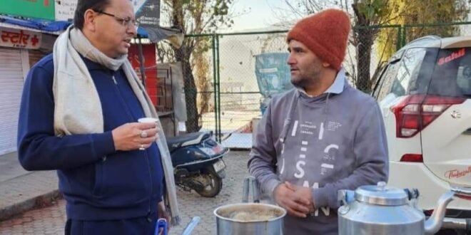 उत्तराखंड :मुख्यमंत्री पुष्कर सिंह धामी जब “वीआईपी कल्चर” छोड़ पहुंचे चाय की दुकान पर