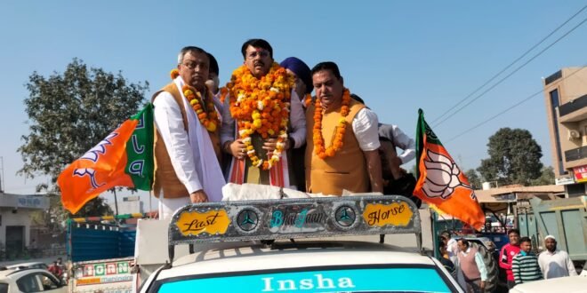 काशीपुर । भाजपा कार्यकर्ताओं ने आज यहां देहरादून से पहुंचे सांगठनिक रुप से बनाए गए काशीपुर जिले के जिलाध्यक्ष गुंजन सुखीजा का काशीपुर पहुंचने पर पूर्व विधायक हरभजन सिंह चीमा, विधायक त्रिलोक सिंह चीमा, वरिष्ठ भाजपा नेता दीपक बाली , मेयर उषा चौधरी डॉ गिरीश चंद्र तिवारी नगर मंडल अध्यक्ष मोहन बिष्ट,अभिषेक गोयल, ग्रामीण मंडल अध्यक्ष बबलू चौधरी आदि के नेतृत्व में अनाज मंडी के पास जोरदार स्वागत किया ।