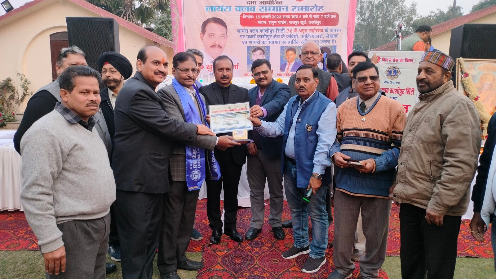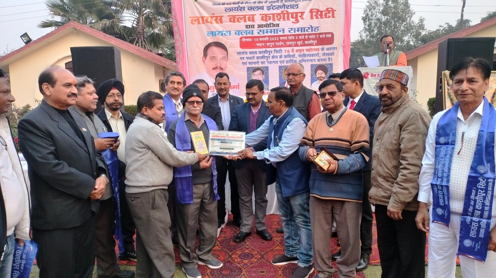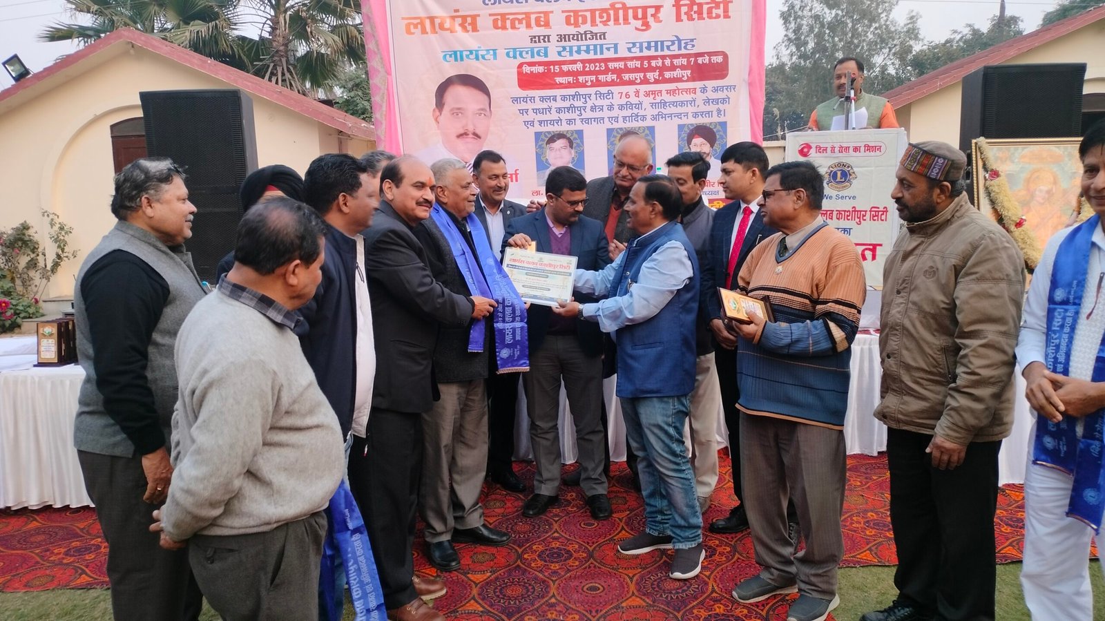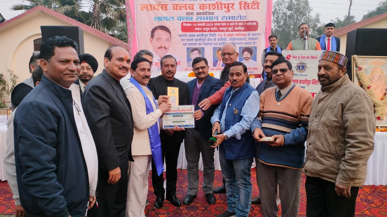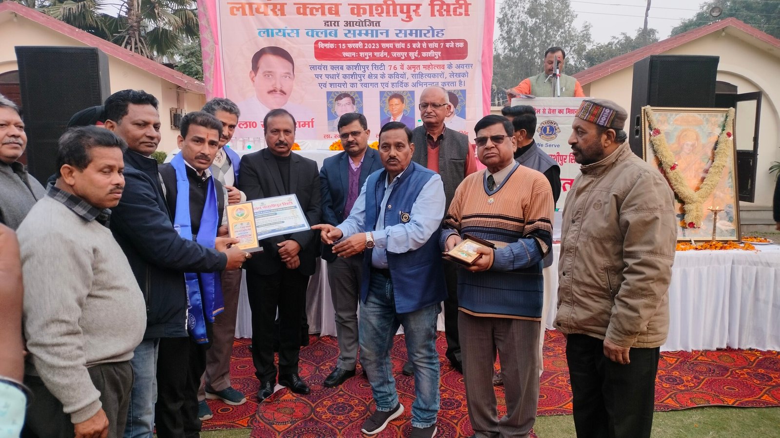 आज सायं यहां कुंडेश्वरी रोड स्थित एक रिसॉर्ट में आयोजित समारोह में लायंस क्लब काशीपुर सिटी ने शहर के अनेक साहित्यकार,कवि व शायरों को सम्मानित किया। समारोह के शुभारंभ पर सर्वप्रथम मां सरस्वती के चित्र के समक्ष दीप प्रज्जवलित कर सरस्वती वंदना की गई। क्लब अध्यक्ष सुरेश शर्मा ने लायंस क्लब की स्थापना व अब तक किये गये सेवा कार्यों को बताया साथ ही क्लब के उद्देश्यों पर विस्तार से जानकारी दी।