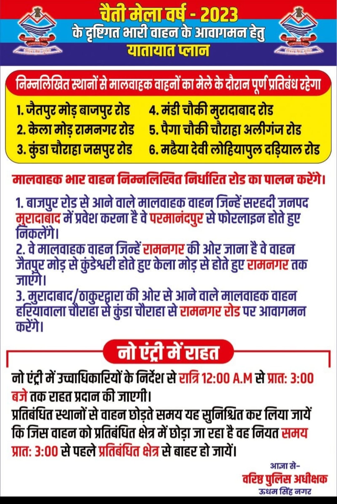 काशीपुर चैती मेला:भारी वाहन प्रतिबंध और महिला की दुर्घटना में मौत से पुलिस की बदली हुई यातायात व्यवस्था पर प्रश्न चिन्ह?आज सुबह हुआ दर्दनाक हादसा