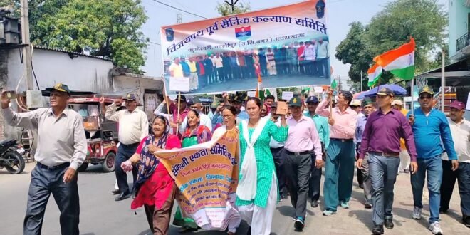 आज विजय पथ पूर्व सेनानी एकता समिति के तत्वावधान में भारी संख्या में पूर्व सैनिक यहां महाराणा प्रताप चौक पर इकट्ठा हुए और रामनगर रोड से एक मार्च निकालते हुए उपजिलाधिकारी कार्यालय पहुंचे जहां एसडीएम के छुट्टी पर होने की वजह से तहसीलदार युसुफ अली को ज्ञापन सौंपा।