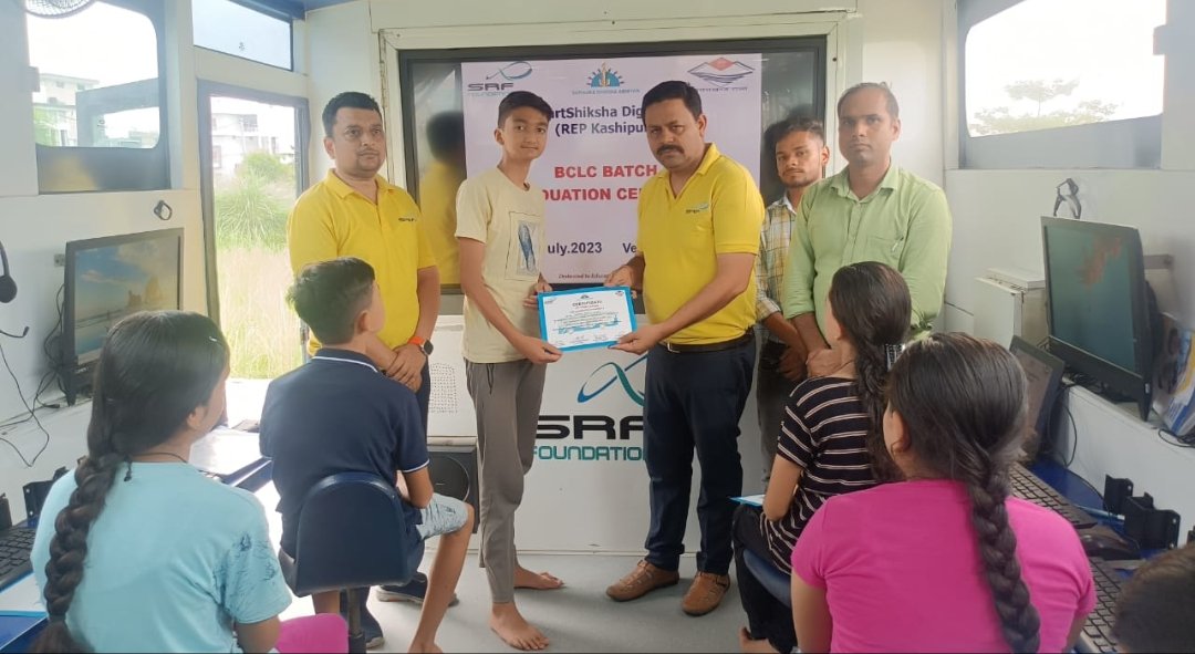 काशीपुर। नवंबर 2022 से काशीपुर में एस आर एफ फाऊंडेशन द्वारा स्मार्ट डिजिटल बस बच्चों को निशुल्क बेसिक कंप्यूटर कोर्स करा कर उन्हें प्रमाण पत्र दिये गये हैं। अब तक साढ़े चार सौ बच्चों को स्मार्ट डिजिटल बस में यह कंप्यूटर कोर्स कराया जा चुका है। इसी क्रम में आज सैनिक कालोनी में पिछले 25 दिनों से चल रहे कोर्स के पूर्ण होने पर प्रमाण पत्र प्रदान किये गये। इस कोर्स की विशेष बात यह है कि बच्चों को कहीं नहीं जाना पड़ता स्मार्ट डिजिटल बस बच्चों के पास आती है।
