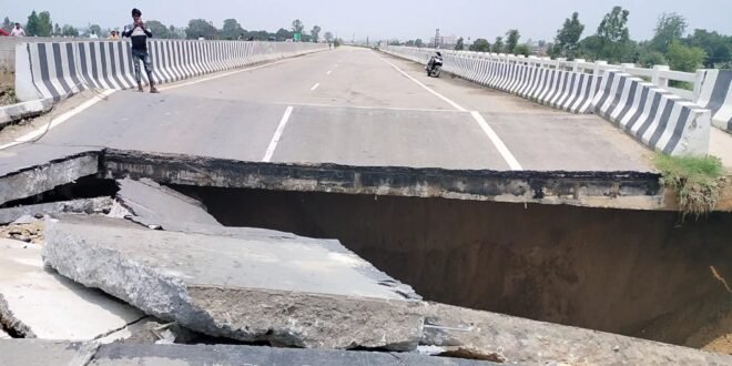 काशीपुर। आज सुबह काशीपुर में ढेला नदी पर बने पुल का हिस्सा भरभरा कर ढह गया। हाईवे पर बने इस पुल के अचानक ढहने से एक बड़ा हादसा होते होते बचा। गनीमत रही कि पुल के ढहने के समय वहां से वाहन नहीं गुजर रहे थे। लेकिन राष्ट्रीय राजमार्ग पर बने इस पुल के ढहने से एन एच के निर्माण कार्यों की गुणवत्ता की पोल खुल गई है।