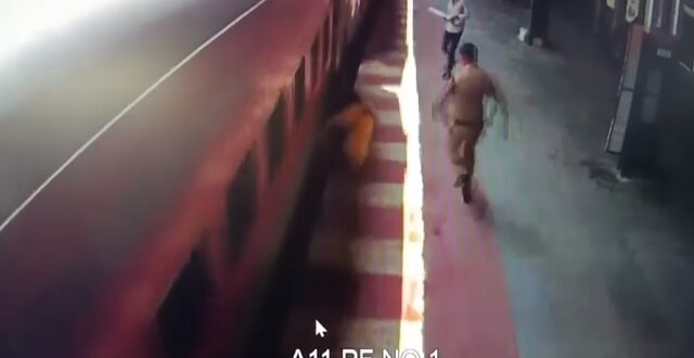 काठगोदाम रेलवे स्टेशन पर ट्रेन से गिरकर फिसली महिला की जान बचाई जीआरपी हेड कांस्टेबल ने, देखिए वीडियो