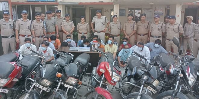 पुलिस ने मौके पर कौशल यादव उम्र-53 वर्ष पुत्र पाती राम यादव निवासी पंजाबी सराय थाना काशीपुर ऊधम सिह नगर , विरेन्द्र कुमार पुत्र विष्णु कुमार निवासी सुभाष नगर थाना काशीपुर ऊधम सिह नगर,मोहम्मद नईम पुत्र फकीर मोहम्मद निवासी मौहल्ला थाना साबिक काशीपुर ,साहिद पुत्र नसीउल्ला निवासी मौहल्ला बासफोडान थाना काशीपुर ,आसिफ पुत्र अमानत हुसैन निवासी बाबरखेडा थाना कुण्डा ऊधम सिह नगर,शोभित अग्रवाल पुत्र सुभाष चन्द्र अग्रवाल निवासी स्टेडियम रोड काशीपुर,मुर्सलीम पुत्र इस्माईल निवासी फतेउल्लागंज थाना ठाकुरद्वारा जिला मुरादाबाद उत्तर प्रदेश , धीरज शर्मा पुत्र स्वराज नन्दन शर्मा निवासी मौहल्ला सिंघान थाना काशीपुर, मेहराज खान पुत्र सोहराब खान निवासी अलीखॉ मौहल्ला थाना साबिक काशीपुर, सनाउर्रहमान ऊर्फ सत्ता पुत्र अतिकुर रहमान निवासी अलीखॉ काशीपुर, शफीक पुत्र एहसान निवासी हरियावाला थाना कुण्डा, इरसाद हुसैन पुत्र निसार अहमद निवासी मौहल्ला मुम्ताज थाना अफजलगण जिला बिजनौर उत्तर प्रदेश , मोहम्मद इस्लाम पुत्र मौ0 जान निवासी मिसरवाला थाना कुण्डा ऊधम सिह नगर ,गौरव कुमार अग्रवाल पुत्र नन्द किशोर निवासी पक्का कोट नागनाथ मन्दिर थाना काशीपुर ,नौसाद पुत्र सरीफ अहमद निवासी मदर कालोनी काशीपुर ,एजाज अहमद पुत्र अनवार अहमद निवासी मौहल्ला थानासाबिक काशीपुर ऊधम सिह नगर, मोईन खॉ पुत्र शरीफ खॉ निवासी गौतमनगर टाण्डा उज्जैन काशीपुर ऊधम सिह नगर को गिरफ्तार कर लिया।