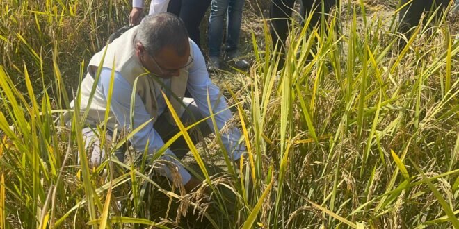 रूद्रपुर। धान की उत्पादकता जॉंच करने के लिए जिलाधिकारी उदयराज सिंह ने आज मटकोटा के एक खेत में पहुॅचकर क्रॉप कटिंग की।