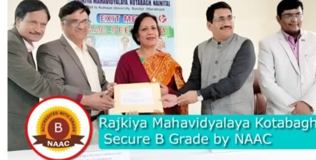 कालाढूंगी/कोटाबाग। राजकीय महाविद्यालय कोटाबाग नैनीताल ने राष्ट्रीय मूल्यांकन एवं प्रत्यायन परिषद (नैक) द्वारा उच्च शिक्षा में गुणवत्तापूर्ण मानको के आधार पर *बी* ग्रेड प्राप्त कर इतिहास रचा है। ग्रामीण अंचल के इस महाविद्यालय के लिए यह एक बड़ी उपलब्धि है।