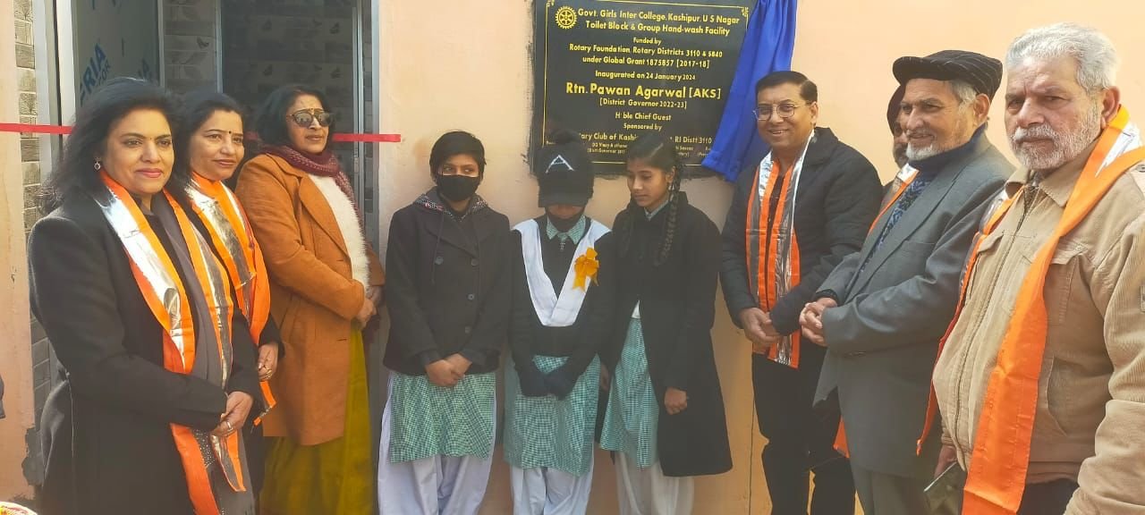 काशीपुर।जी जी आई सी काशीपुर में रोटरी क्लब ऑफ काशीपुर कॉर्बेट द्वारा निर्मित टॉयलेट ब्लॉक एवं हैंड वाश सुविधा का IPDG पवन अग्रवाल द्वारा लोकार्पण किया गया।