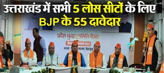 देहरादूनः उत्तराखंड की भारतीय जनता पार्टी (भाजपा) चुनाव संचालन समिति ने मंगलवार को राज्य की सभी पांच लोकसभा (लोस) सीटों के लिए 55 दावेदारों के नाम केंद्रीय नेतृत्व को भेज दिए।