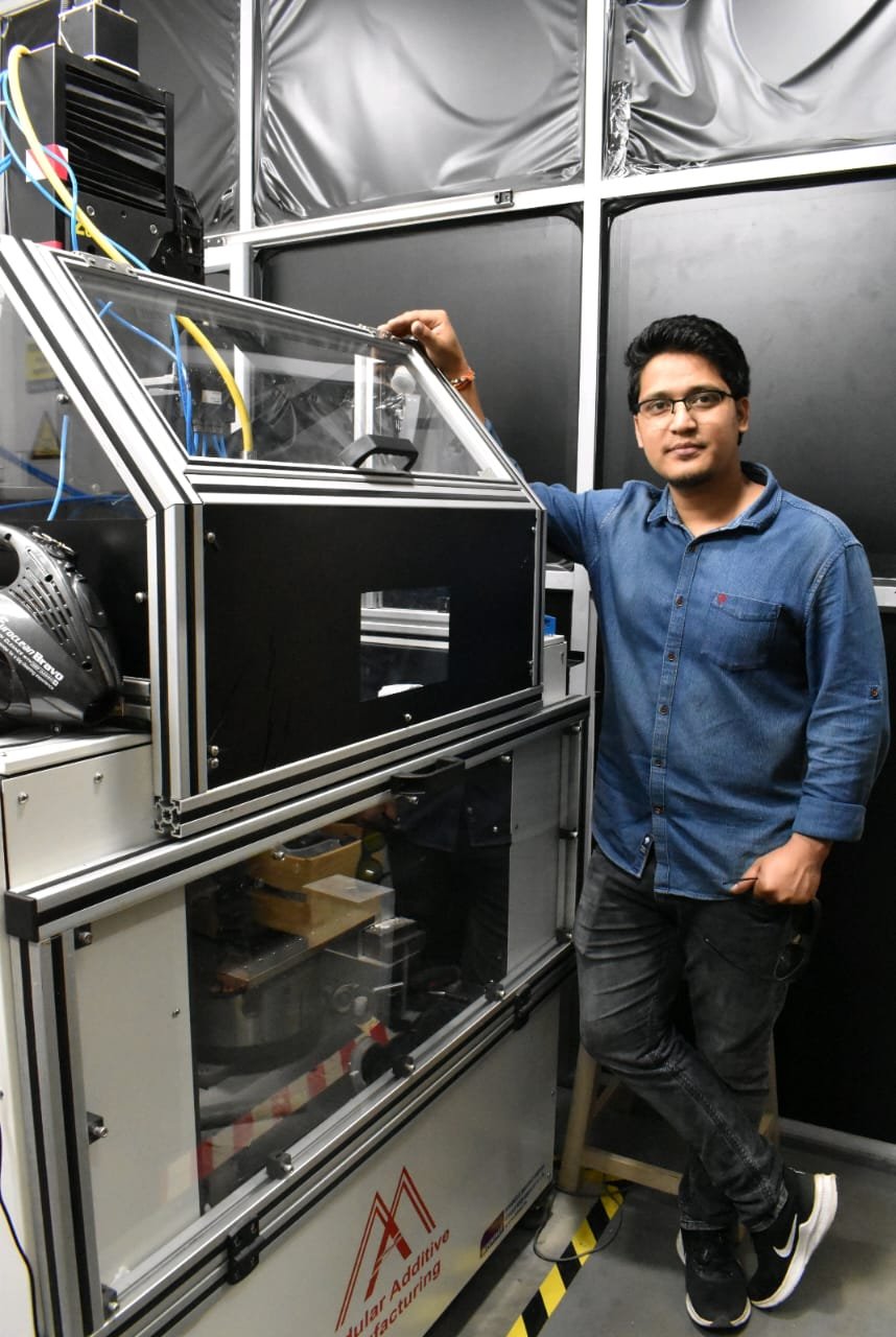 पूरी तरह मेड इन इण्डिया 3D मेटल प्रिंटर के साथ डॉ0 हरीश सिंह धामी, जो इनकी टीम द्वारा तैयार किया गया और पेटेंट नामांकित कराया।