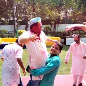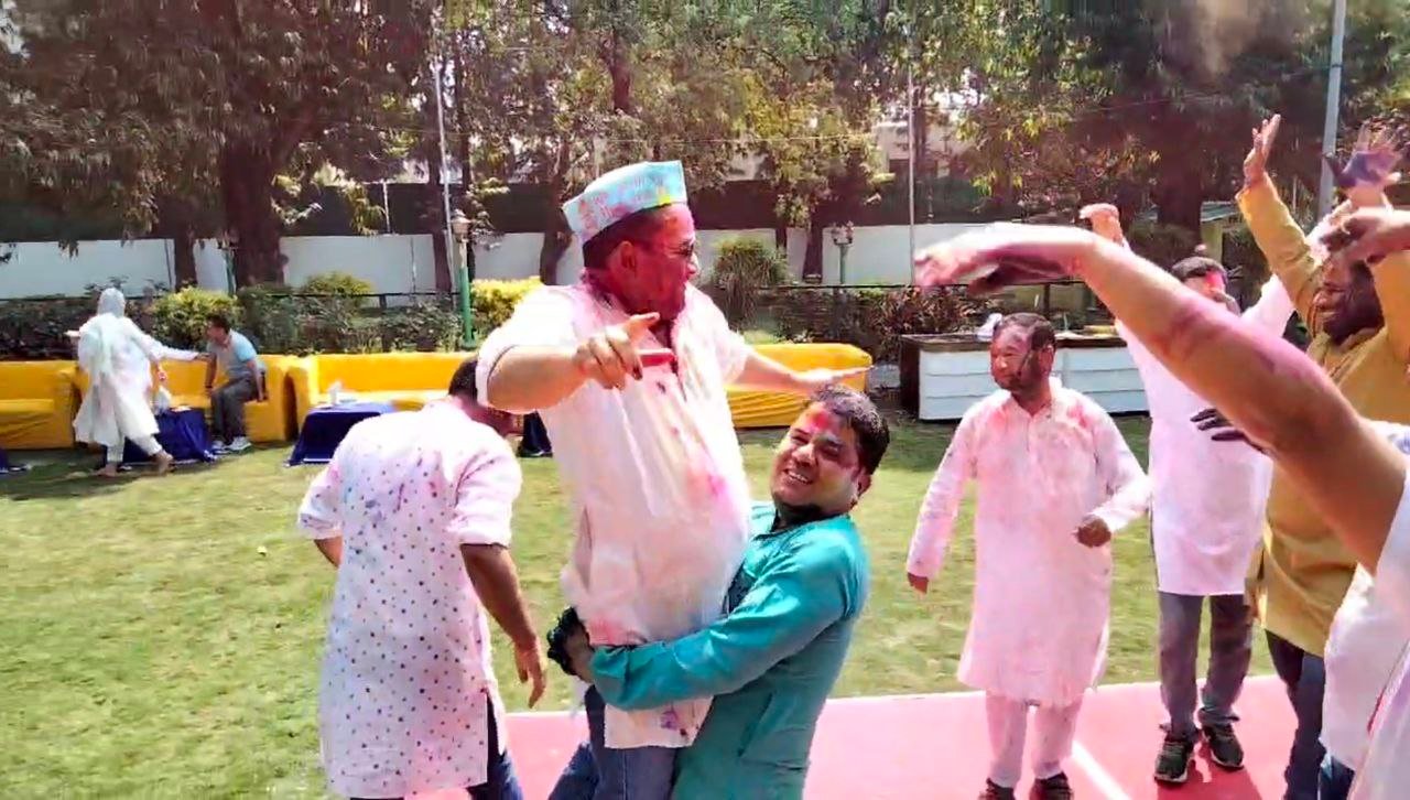 हल्द्वानी में कमिश्नर दीपक रावत के कैंप कार्यालय में जमा होली का रंग