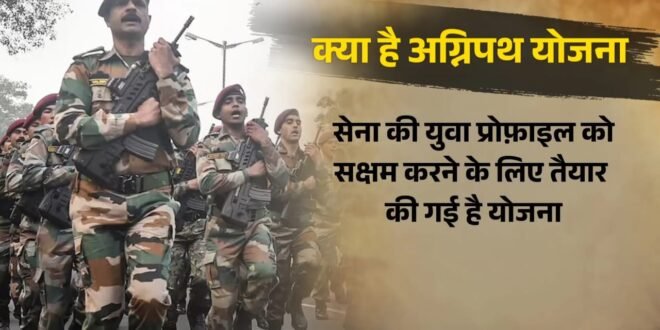 केन्द्र सरकार ने 14 जून 2022 को सशस्त्र बलों में युवाओं की भर्ती के लिए योजना की शुरुआत की। योजना के तहत चुने गए युवाओं को ‘अग्निवीर’ के रूप में जाना जाएगा। ये योजना युवाओं को 4 साल की अवधि के लिए सेना में सेवा की अनुमति देती है। इस योजना से सेना की युवा प्रोफ़ाइल को सक्षम किया जाएगा।
