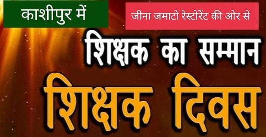 काशीपुर । शिक्षक दिवस पर जीना जमाटो रेस्टोरेंट की ओर से एक अनोखे तरीके से शिक्षकों को सम्मानित किया जा रहा है। जीना जमाटो रेस्टोरेंट के स्वामी व समाजसेवी सुरेंद्र सिंह जीना ने बताया कि एक शिक्षक की सेवाओं और राष्ट्र निर्माण में योगदान के बदले में उनका ऋण कभी भी चुकाना संभव नहीं है लेकिन जीना जमाटो की ओर से एक छोटा सा प्रयास किया गया है।