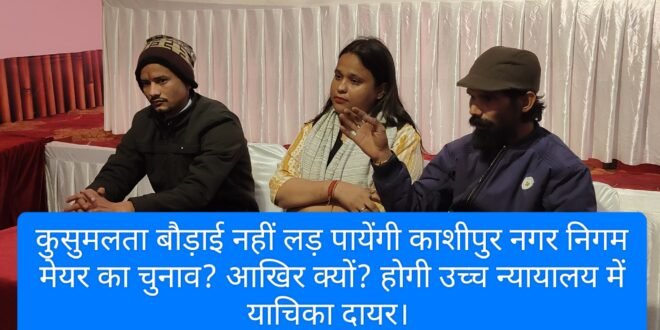 मीडिया के प्रश्नों का जवाब देते हुए किसान पुत्र कार्तिक उपाध्याय ने कहा कि माननीय न्यायालय ने जल्द याचिका पर सुनवाई की तो ठीक अन्यथा जल्द ही पर्वतीय समाज का दूसरे प्रत्याशी को चुनाव मैदान में उतारा जायेगा,क्योंकि हम पूर्व में भी कह चुके हैं कि काशीपुर में पर्वतीय समाज के मतदाताओं की निर्णायक भूमिका मेयर चुनने में रहती हैं और चुनाव के बाद जितने वाले जनप्रतिनिधि विमुख पर्वतीय समाज के मतदाताओं से करते हैं,अगला जो प्रत्याशी होगा वह कुसुम लता बौड़ाई के संरक्षण में चुनाव लड़ेगा।