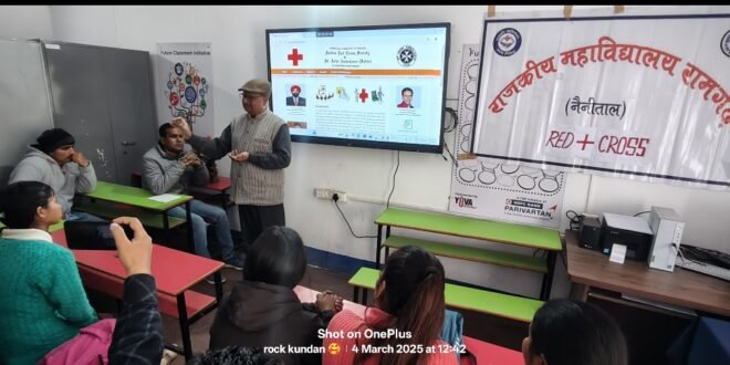 भवाली/ रामगढ़। राजकीय महाविद्यालय रामगढ़ (नैनीताल) में रेड क्रॉस सोसाइटी के तत्वावधान में रेड क्रॉस कार्यशाला का आयोजन किया गया। इस कार्यशाला का उद्देश्य छात्र-छात्राओं को रेड क्रॉस से संबंधित अभिविन्यास की जानकारी प्रदान करना रहा।