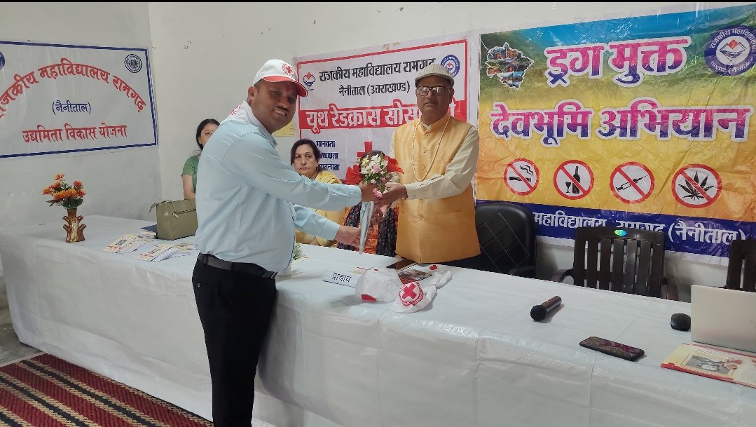 भवाली /रामगढ़।राजकीय महाविद्यालय रामगढ़ ( नैनीताल) में यूथ रेड क्रॉस सोसाइटी के तत्वावधान में मानवता की ओर एक कदम विषय पर विचार गोष्ठी का आयोजन किया गया।कार्यक्रम की अध्यक्षता प्राचार्य प्रो नगेंद्र द्विवेदी जी ने दीप प्रज्ज्वलन के साथ की ।