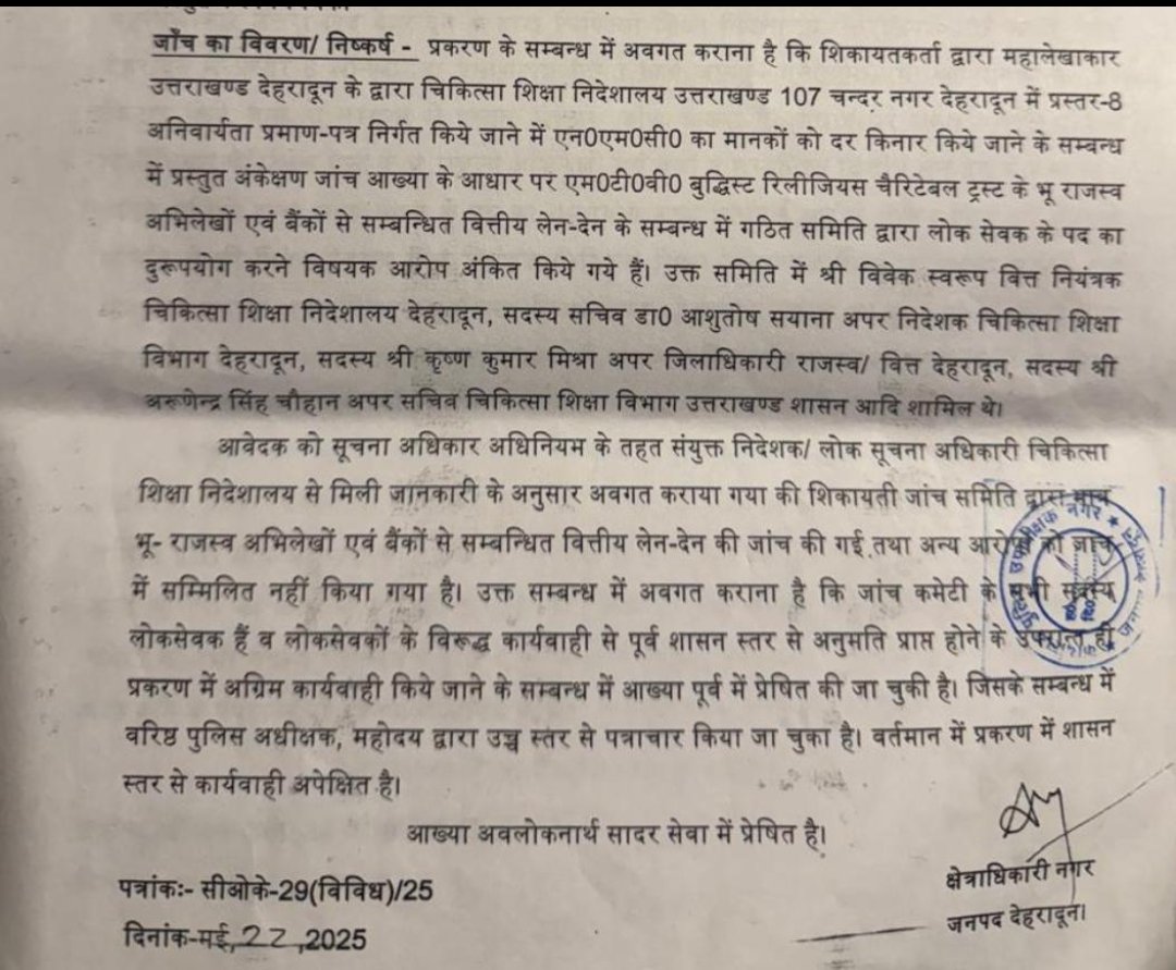 बता दें कि अरुणेद्र सिंह चौहान के खिलाफ झाझरा भूमि प्रकरण में भू स्वामी ने माननीय न्यायालय के समक्ष परिवाद दाखिल किया है जिसमे कोर्ट द्वारा समन जारी किए गए है वहीं एक अन्य सुभारती मेडिकल कॉलेज एवं रस बिहारी बोस निजी विश्विद्यालय जांच समिति घोटाला में माननीय सीजेएम न्यायालय द्वारा पुलिस को जांच के आदेश दिए गए है जिसमे गत 22 मई 2025 को प्राप्त आरटीआई में वरिष्ठ पुलिस अधीक्षक के कार्यालय से अवगत करवाया गया कि प्रकरण में पुलिस क्षेत्राधिकारी नगर देहरादून के यहाँ से जाँच रिपोर्ट पुलिस महानिदेशक स्तर से शासन को भेजी गई है जो शासन स्तर पर चल रही है ।