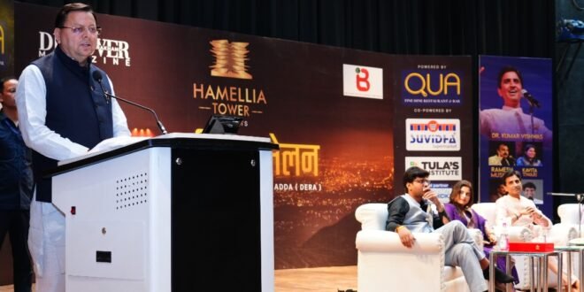 मुख्यमंत्री पुष्कर सिंह धामी शनिवार को हिमालयन सांस्कृतिक केंद्र, गढ़ी कैंट देहरादून में QUA द्वारा आयोजित डेरा कवि सम्मेलन को सम्बोधित कर रहे थे |