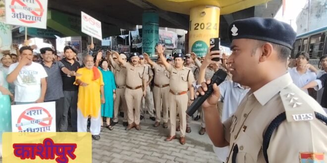 काशीपुर। कोतवाली पुलिस ने आज यहाँ नशे के विरुद्ध जागरूकता रैली निकाली। रैली सायं छह बजे कोतवाली परिसर से आरंभ हुई। रैली का नेतृत्व सीओ दीपक कुमार व कोतवाल अमर चंद्र शर्मा ने संयुक्त रूप से किया।
