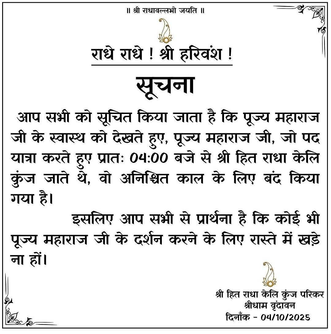 पिछले दो दिनों से महाराज पदयात्रा पर नहीं निकल पाए थे, जिससे लगभग सभी भक्त अनजान स्थिति में दर्शन की प्रतीक्षा करते रहे। इसी कारण, उनके आश्रम की ओर से सोशल मीडिया पर भक्तों से अपील की गई है कि वे रास्ते पर खड़े होकर प्रतीक्षा न करें।
