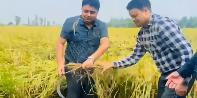 रुद्रपुर। रुद्रपुर तहसील के ग्राम अमरपुर में जिलाधिकारी नितिन सिंह भदौरिया ने आज खरीफ फसल धान की क्रॉप कटिंग की। इस दौरान उन्होंने कृषक जितेन्द्र कुमार के खेत का निरीक्षण करते हुए फसल की गुणवत्ता, पैदावार और खेती में अपनाई जा रही आधुनिक तकनीकों का जायजा लिया। क्रॉप कटिंग प्रक्रिया में 43.3 वर्ग मीटर क्षेत्र से 30.20 किलोग्राम धान का उत्पादन हुआ, जिससे औसतन लगभग 28 कुंतल प्रति एकड़ की उपज दर्ज की गई।