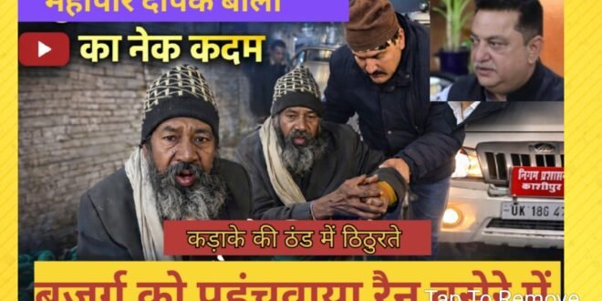 काशीपुर। शहर में पड़ रही भीषण ठंड के बीच मानवता की मिसाल उस समय देखने को मिली, जब माता मंदिर रोड पर खुले आसमान के नीचे पतला कंबल ओढ़कर सो रहे एक बुजुर्ग की सूचना शब्द दूत के द्वारा महापौर दीपक बाली तक पहुंची। सूचना मिलते ही महापौर ने तत्काल संज्ञान लिया और बिना समय गंवाए नगर निगम अधिकारियों को आवश्यक निर्देश जारी किए।