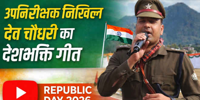 उत्तरकाशी। गणतंत्र दिवस 2026 के अवसर पर पुलिस लाइन ज्ञानसू, उत्तरकाशी में भव्य समारोह का आयोजन किया गया। कार्यक्रम देशभक्ति और उत्साह के वातावरण से सराबोर रहा। इस दौरान उपनिरीक्षक निखिल देव चौधरी (प्रभारी चौकी भटवाड़ी) ने देशभक्ति से ओत-प्रोत गीत प्रस्तुत कर उपस्थित जनसमूह को मंत्रमुग्ध कर दिया।
