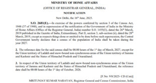 Read More »बड़ी खबर :भारत में जनगणना 2027 की अधिसूचना जारी, प्रक्रिया हुई प्रारंभ