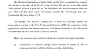 Read More »बड़ी खबर : उपराष्ट्रपति के चुनाव के लिए भारत निर्वाचन आयोग की तैयारियां शुरू