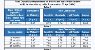 – वरिष्ठ नागरिकों के लिए 42 महीनों की एफडी पर ब्याज दर सबसे अधिक 8.85 फीसदी है – वरिष्ठ नागरिकों …
