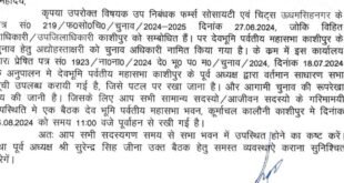 @शब्द दूत ब्यूरो (31 जुलाई 2024) काशीपुर । देवभूमि पर्वतीय महासभा के चुनाव के लिए चुनाव अधिकारी नायब तहसीलदार ने …